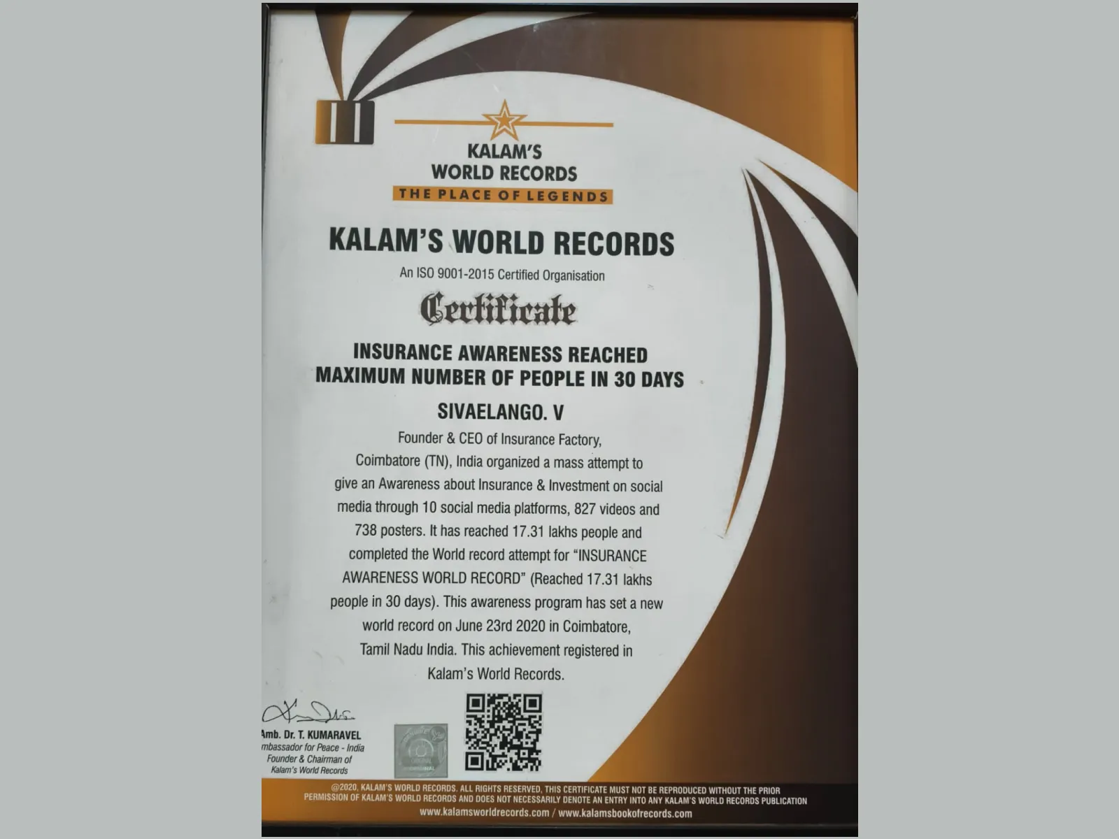 Insurance Factory, founded in 2002 by Sivaelango and Kamalaveni Sivaelango, is a family-owned and operated insurance agency built on trust, integrity, and a passion for helping people. With over 23 years of experience, we've grown from a small agency to a leading provider of insurance solutions in Coimbatore and beyond. Our team of 14 dedicated professionals is committed to providing personalized service and expert guidance to our 12,500+ individual and 50+ corporate clients.